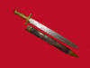3. Extremely rare, Confederate manufactured, Roman style short Artillery sword with “CS” in the center of the cross guard and a star on the pommel.  These swords are thought to have been made at the Selma Arsenal in Alabama, as a couple of partially cast guards have been found in the river there.  This example has a brown/black, aged patina blade with scattered pitting.  The high copper content, heavy cast brass guard has spiraling ribs and a “CS” and star cast into each side.  This style Confederate sword is known for its crudity of manufacture (which is one of the factors that makes Confederate collectors love it).--$3,150.
