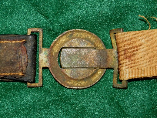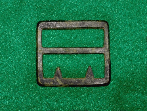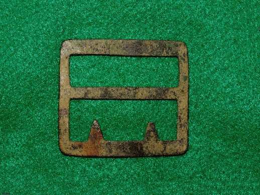 67. Very pretty, non-excavated, brass belt adjustor off a regulation Civil War issue US belt rig.  These are difficult to come by when you need one.  If you have a nice US belt rig but missing the brass adjustor, here's your chance.--$48.