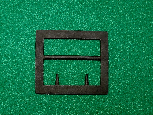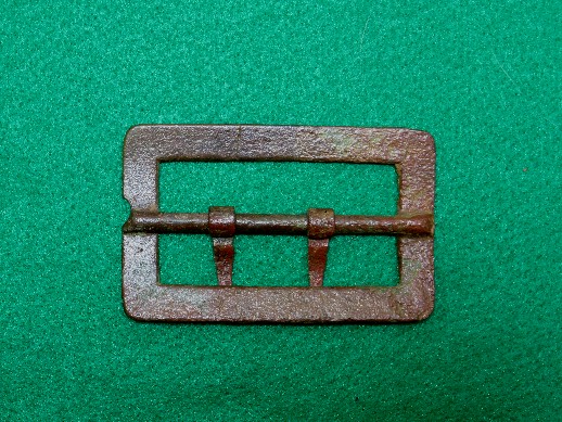 2. Excavated, Federal carbine sling buckle recovered from Camp Stanley, Murfreesboro, Tennessee.  This buckle was found in a trash pit and is a bit pitted in some areas because of that.  It has a uniform brown patina with both attachment tongues remaining intact.--$95.