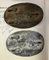 22. As pretty as you are ever going to see, excavated, large size, US oval cartridge box plate.  This plate was recovered many years ago here at Stones River and has a reflective brown patina on the face with full, smooth lead and both wire attachment loops remaining intact on the reverse.  This is as pretty a plate as you are ever going to recover.--$250.