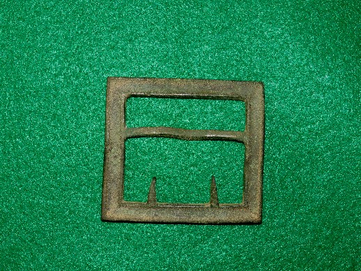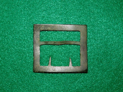26. Absolutely perfect beautiful condition, excavated Confederate "fork-tongue frame" CS waist buckle.  It was recovered from Confederate 1862 - 1863 Polk's Corp winter camps along Duck River near Shelbyville, Tennessee.  I have an identical one in my own collection that I recovered in the same camp.--$950.SOLD