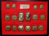 14. Beautiful display containing 16 stamped brass harness buckle covers.  These were taken from home to the field, and we recover far more of these in CS camps than Union camps.  They create a very impressive display.--$295. for the entire display including case.