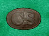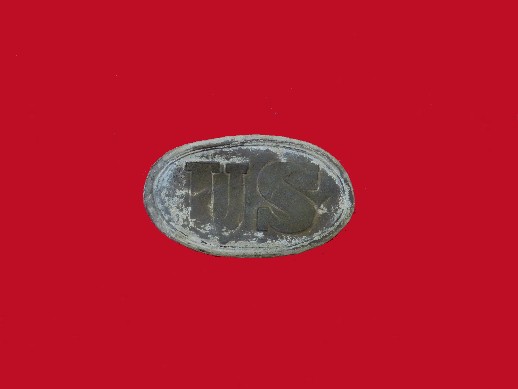 62. Smoking beautiful large size "U.S." oval lead filled Union cartridge boxplate.  This was recovered in 1978 by Wade Buchannan among the limestone outcroppings along Stones River near the current Bumpus Harley Davidson store.  This plate is an "11" on a scale of 10 !!!!--$250.