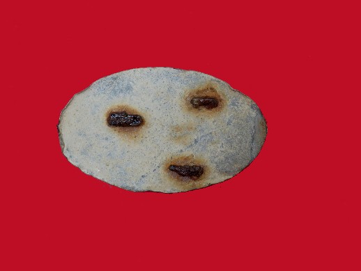138. Quite rare to recover, excavated, small size "Burnside" breast plate.  These plates run about 3/16 inch smaller than the typical breast plate and are often recovered associated with General Burnside's camps.--$195.