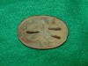 93. Excellent condition, excavated, circular Eagle breast plate.  This plate was recovered on private property here at Stones River over 40 years ago.  It has a smooth chocolate patina, full lead, and one of the two attachment loops remaining intact.--$195.
