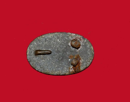 37. Excavated, large size, lead-filled, US oval cartridge box plate.  This plate was recovered here at Stones River about 35 years ago.  It has a slick, brown/green patina on the face with full lead in the reverse.  The wire loops have rusted into.  This plate has an excellent display face.--$175.