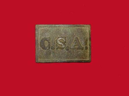 12. Absolutely perfect excavated "Thinner Tennessee style" cast brass "C.S.A. - rectangle"  waist belt plate that I personally recovered back in 1986 from the Confederate Artillery Guard camp located just South of, and near to Shelbyville, TN., and occupied Jan. - June, 1863.  This buckle has perfect body curve, and all three hooks 100 percent intact, and full length.  This buckle has never even been washed off, and remains just as it came out of the ground.  What a BEAUTY !!!--$4,500.SOLD