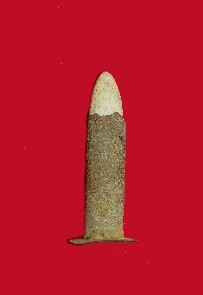 130. Excavated male phallic symbol recovered from an 1863 Confederate winter camp on private property along Duck River near Shelbyville, Tennessee.  I was a little surprised that this bullet did not have carved into it "Lorena Bobbitt was here".--$75.