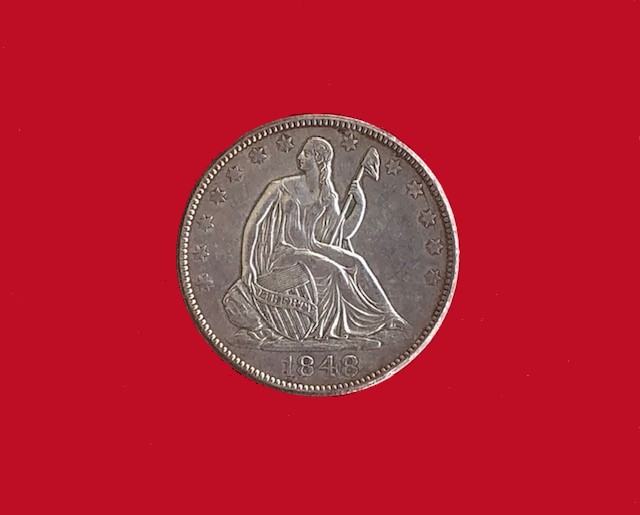 2. Absolutely drop-dead beautiful, excavated, 1848 - New Orleans silver half-dollar.  This beautiful coin was recovered from General Breckinridge's November 1862 camp near Readyville, Tennessee.  Some soldier was very unhappy about losing this coin.--$150.SOLD