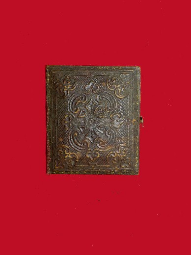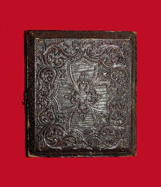 156.  Quite rare hanging style ornate gutta-percha case for a 1/6th plate tintype or ambrotype.  It is an "Improved UNION CASE" with an "1859" patent date.  When this case came out of the estate sale some of the corners were chipped, and I have had them professionally restored.  Perfect for your "extra nice image.--$150.