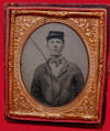 9. Fully cased 1/6th plate tintype of Charlie Crumly - 1st Reg. N.Y. Artillery.  He is wearing a regulation Federal Artillery Shell Jacket.--$150.