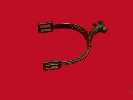 96. Very cool artifact!!  Regulation Federal Cavalry spur that is clearly bullet struck.  This spur was recovered many years ago.   The bullet appears to have taken the entire heel of the Cavalry boot off.--$195.SOLD