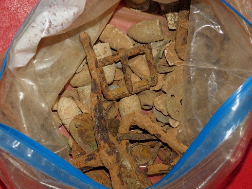 3. Plastic bag containing approximately 150 assorted type bullets, buttons, knapsack parts, pocket knife, and other pieces recovered by early relic hunter, Mr. Roy Blick, around the Battlefield here at Stones River.--$95 for the entire bag of artifacts.