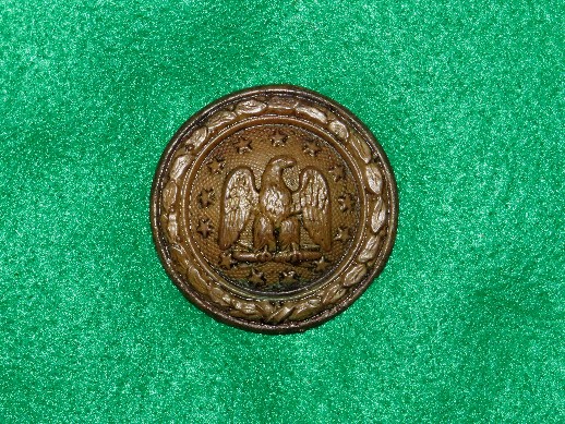 44. Really pretty, and "Very Rare" excavated circular lead filled eagle device "Militia Officer's" Cavalry rosette.  These are actually rarer to find than many Federal belt plates.  They are usually recovered from Confederate sites as they are "Pre-War era" and were carried over for use in the Civil War mainly by Confederates.  This one was recovered from a Confederate camp site in Northern Mississippi.--$375.