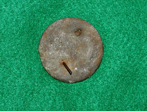 1. SUPER RARE, and in excellent  condition excavated lead filled circular "Droop Wing Eagle" Militia Officer's stirrup boss.  This was recovered from a Confederate Cavalry camp  located near Franklin, TN.  I recovered one of these from the same camp.  For many years we thought these were Confederate made because of the Droop Wing Eagle, and they are almost always found in Confederate camps, but it was later learned that they are of PreWar Militia origin.  You are not going to see a prettier one than this one !!!--$595.