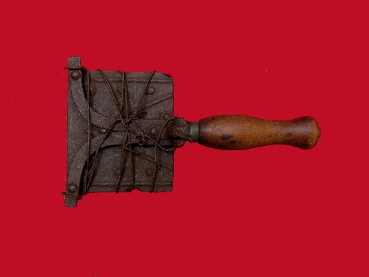 19. Very pretty condition original non-excavated Civil War era iron horse curry comb.  This came out of a log out building here at Murfreesboro, and is exactly identical To half a dozen that I have recovered in Confederate cavalry camps in this area.--$48.