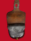 79. Excellent condition, non-excavated, 8 inch pewter powder flask.  This is exactly the type flask that young Confederates carried from home and that we recover in 1861 - 1862 Confederate camps.  This one still works perfectly and isn't even dented.--$95.SOLD