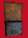 91. Quite rare and in very nice condition, .58 cal., Model 1855, rifle musket leather cartridge box.  This box has the stamped brass lead-filled US box plate on the outside flap and has a huge "Boyd & Sons Boston" maker mark on the inside flap (measures 2 x 3 inches) and reads, "Boyd & Sons - Boston - Manufacturers of Army Accoutrements".  The box remains quite pliable with very little surface flaking.--$650.