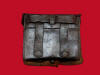 265. Small leather Civil War era Pistol cartridge box correct for .44 cal. revolver ammunition.  The box remains in nice condition with pliable leather, and is only missing the tip of the leather closure tab.  This would be a perfect compliment to display with your .44 cal. Colt or Remington Army revolver.--$175.