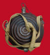 214. Quite rare and very attractive, 8 inch, "basket weave", copper powder flask.  This flask dates the 1840 - 1860 era, has intricate detail, and a gently aging patina.  Many collectors have historically believed this to be one of the most attractive pattern antique powder flasks.--$95.SOLD