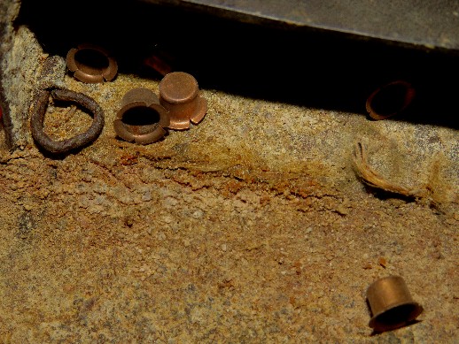 14. Very unusual set of .58 cal. cartridge tins.  These cartridge tins run horizontal instead of vertical.  They came out of this local area in a disintegrating Confederate cartridge box.  I am not acquainted with these tins, and don't really know if they are militia, private contract, or C.S. origin.  I do know in 50 years - this is the first set of these that have come into the shop !!--$275.