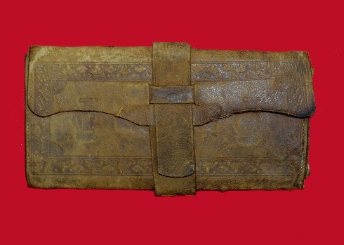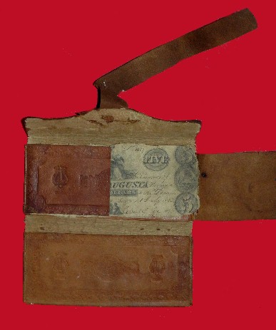 7. Excellent condition Civil War era leather wallet with a $5 pre-Civil War Augusta, Georgia note inside.  This is nice enough for display in a museum.--$150. (including note)SOLD