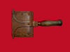 73. Excellent condition, non-excavated, Civil War Era curry comb.  The original wood handle remains intact, and the curry comb could easily be still used today.  We have excavated many curry combs like this one from Civil War Cavalry camp sites.--$75.