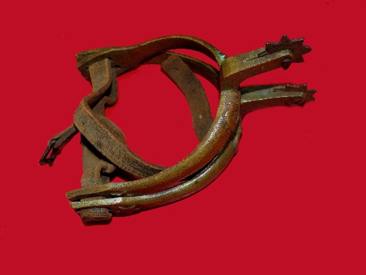 73. Absolutely beautiful set of gilted Officer's boot heel attachment spurs.  These spurs are made of highly gilted cast brass with an iron tongue that was literally driven into the leather boot heel and held the spurs firmly in place.  The spurs remain in perfect condition with 100% heavy gold gilt remaining on both spurs.  These spurs are out of the George Dibrell estate located near Sparta, Tennessee. Col. Dibrell commanded the 13th Tennessee Cavalry, CSA and had half a dozen family members within his command.  It is impossible to know which family member the spurs belonged to, but all were "Confederate Cavalry".  These are nothing less than museum grade.--$450. for the pair.