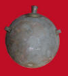 197. Model 1858, "tin spout", smooth type canteen out of a north Georgia estate.  The canteen is overall quite crude and is either St. Louis Arsenal production or a Confederate local.  It was without a doubt Confederate carried and quite possibly Confederate manufactured.--$250.