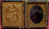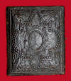 284. Extremely uncommon to excavate, this is a camp site dug, small brass book for holding "gem size" tintypes.  The pages will still open and close.  The last two photographs are of a non-excavated similar folding book with gem size Civil War tintypes still inside.  It is listed as number 1 in the Images section.  These two items would make a fantastic display together.  For the excavated folding image book "alone"--$48.  Or, for both books, including tintypes and in a glass display case--$195.
