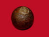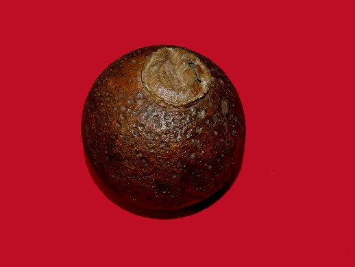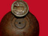 55. Excavated 12 lb. size copper time fuzed Confederate cannon ball.  This cannon ball was recovered on private property near Chickamauga, GA. many, many years ago. It has been disarmed, cleaned, and coated, and is ready for display.  It does have some pitting, but is a rare Confederate ball, and still displays quite well.--$350.