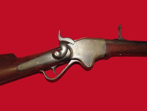 51. Very nice condition and highly sought after, Model 1860 Spencer 7-shot carbine.  This carbine is serial number 39669 and is nice, early production.  The action remains tight, and it has a good bore.  In recent years, the Spencer 7-shot repeating carbine has become one of the absolute favorites in the collector community.  The Spencer marking remains crisp and clear.  This is a Spencer carbine that would fit nicely in most any collection.--$2,650.