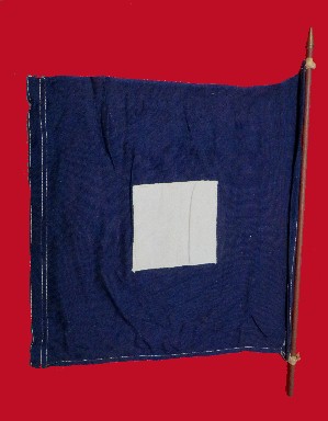 77. Nautical Signal Flag that just came in as part of an "Old Time" Civil War collection.   It is my understanding this is a maritime signal flag signaling "Get back on board - the ship is about to sail."  Nautical signal flags have been in use for multi-hundred years being extremely important during the "pre-radio" era.  This flag shows definite age, but I am not sure of the exact era of the flag.  It displays very nicely.--$65.