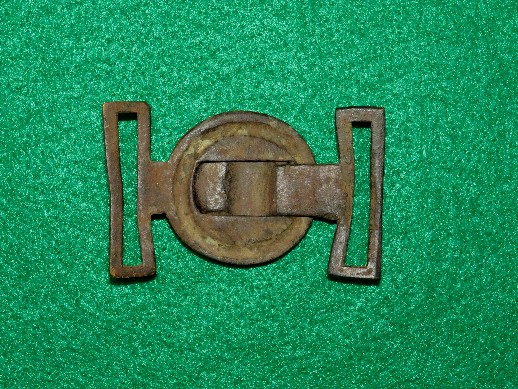 10. About 30 years ago, I recovered the complete two-piece sash/suspender buckle pictured in the 1863 winter camp of Walthall's Confederate Infantry Brigade.  Recently, a fellow collector recovered 1/2 of the very same buckle from a camp in Texas.  Our question is, "Has anyone else recovered half or a whole similar example?"  It is a very pretty, well-made buckle on substantial silvered sheet brass.  Any additional information will be greatly appreciated.