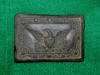 36. Excavated cast brass Federal Model 1851 eagle sword belt plate.  This buckle was recovered at Camp Stanley here at Murfreesboro, TN.  When the buckle was recovered, the outside loop of the belt keeper was broken.  We have glued it back in place for better display (but wouldn't hold up to stress of wearing, etc.)  The buckle displays very nicely.--$275.