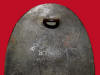 83. Quite rare to recover, excavated, small size "Burnside" breast plate.  These plates run about 3/16 inch smaller than the typical breast plate and are often recovered associated with General Burnside's camps.  This example has not even been washed off.  One complete attachment loop remains intact on the back.--$225.