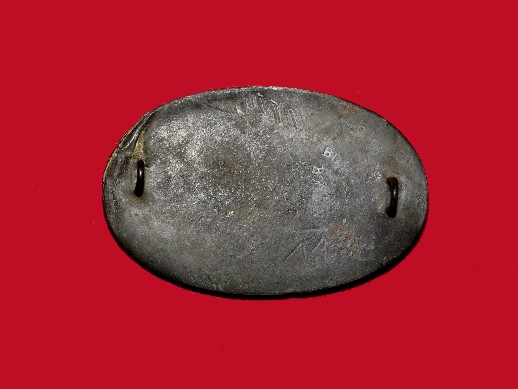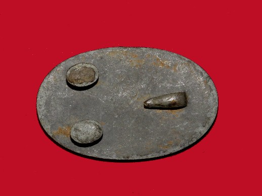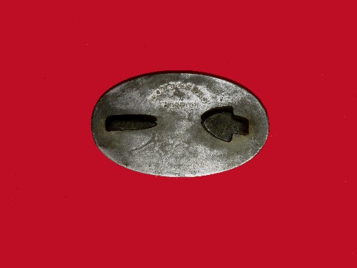 25. Excavated, large oval, lead-filled, US cartridge box plate.  This plate was recovered about 40 years ago among the limestone out-croppings on private property here at Stones River.  The plate's face is as slick as a baby's butt, and it has full lead and one of the two wire attachment loops still intact.  This is the kind of incredible quality that we were recovering 40 - 50 years ago.--$195.SOLD*