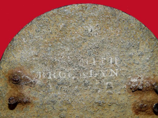 113. Beautiful condition, excavated, circular Eagle breast plate with "W. H. Smith - Brooklyn" backmark.  This plate was recovered here long ago and is in the condition that we recovered 30 - 40 years ago.--$325.
