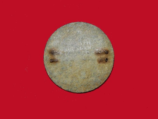 130. Very pretty condition, excavated, lead-filled, circular, Federal Eagle breast plate.  This plate has a smooth, chocolate brown patina and nice detail on the face with full lead and both wire attachment loops on the reverse and is backmarked, "W. H. Smith Brooklyn".  This plate was dug many years ago and is about as pretty as they come.--$295.