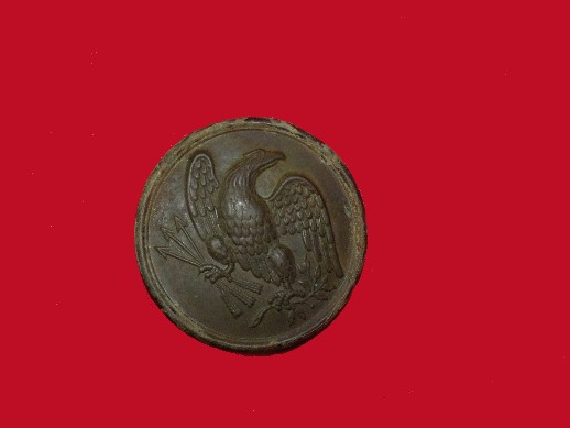 33. Absolutely beautiful condition, excavated, circular Eagle Federal breast plate.  This was recovered among the limestone out-croppings at the end of Nickens Lane behind "One-Eye Taylor's" house (he actually built us a wooden ladder to get over his fence to relic hunt so we didn't mash down his fence)!!  The buckles, box plates, and breast plates that came out of this area were absolutely spectacular.  The limestone neutralized any acid in the ground, and the plates were gorgeous.--$225.