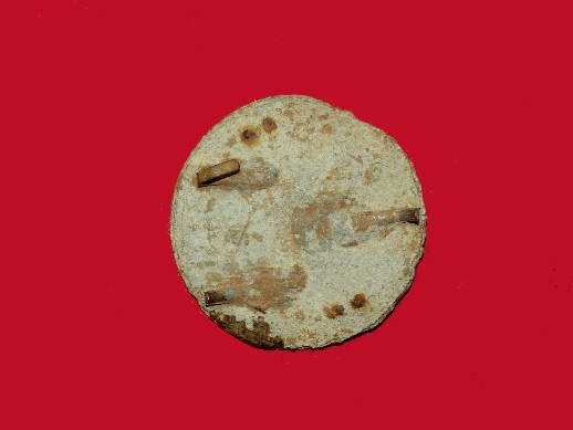 116. Absolutely beautiful condition, excavated, lead-filled, circular, Eagle shoulder belt plate (breast plate).  This plate was recovered on private property here at Stones River about 40 years ago and is in nice enough condition to literally go back on a cross belt.  The plate has a reflective, slick, brown patina on the face, full smooth lead on the reverse, and both iron attachment loops perfectly intact.  They just don't get any better.--$250.