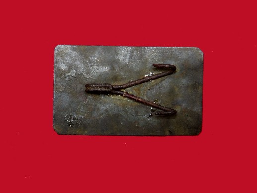 125. Nice condition, quite rare, excavated, 3-iron hook pattern, N.C.O. cross belt plate.  This plate was recovered about 40 years ago from a Federal camp site here in Middle Tennessee.  The plate has a smooth, chocolate brown face with smooth, full lead, and all three iron attachment hooks remaining intact.  There is a small number "61" stamped into the face of the plate.--$375.