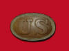 131. Beautiful condition non-excavated large size "US" oval cartridge box-plate with a very rare "Boyd and Sons" backmark.  Smooth never cleaned chocolate patina.--$325.