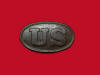 76. Smoking beautiful large size "U.S." oval lead filled Union cartridge boxplate.  This was recovered in 1978 by Wade Buchannan among the limestone outcroppings along Stones River near the current Bumpus Harley Davidson store.  This plate is an "11" on a scale of 10 !!!!--$250.