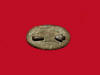 30. Excavated, cast brass, small "Lions Head" Confederate used buckle.  These buckles were imported from England and issued to Confederate forces.  This buckle is "small size" and had only about a 3/4 inch wide belt.  I recovered one of these exact same type buckles in a larger (and wider) "waist belt" size.  The entire buckle had "two" lion's head discs attached with an "s" shaped brass attachment hook.  One end of the hook was open, and actually hooked and unhooked.  The other end was closed, and stayed with that half of the buckle.  It worked much the same as the English snake buckle.  I recovered mine from a Jan. to June - 1863 Army of Tennessee camp along Duck River near Shelbyville, Tenn.  This is a rare style buckle to recover.  I have only seen about a half dozen of these type buckles recovered in all these years.--$150.SOLD