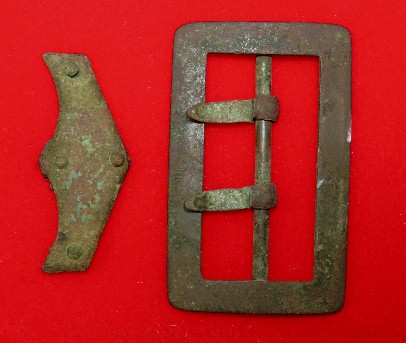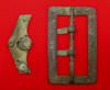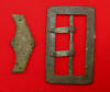 143. Excavated Federal carbine sling buckle with matching cast brass belt tip.  This buckle was recovered many years ago at Camp Stanley here at Murfreesboro, Tennessee.  It remains dirt covered just as found.--$125.SOLD