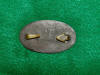 114. Excellent condition, non-excavated, large size, lead-filled US oval cartridge box plate.  This box plate is out of a central Ohio estate sale and has a never-cleaned, chocolate brown patina that literally rivals a dug patina.  The reverse has full lead and both wire attachment loops remain intact and are 2 5/8 inch apart.  If you have a Federal cartridge box lacking the box plate, you are not going to find one more untouched than this one.--$250.