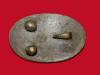 127. Absolutely beautiful condition, excavated, lead-filled, circular, Eagle shoulder belt plate (breast plate).  This plate was recovered on private property here at Stones River about 40 years ago and is in nice enough condition to literally go back on a cross belt.  The plate has a reflective, slick, brown patina on the face, full smooth lead on the reverse, and both iron attachment loops perfectly intact.  They just don't get any better.--$250.