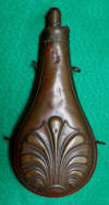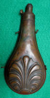 rare to find, complete mid-1800's DOUBLE leather shot flask.