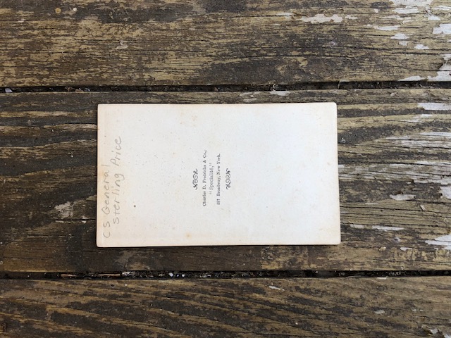 3. Crisp, clear, from life CDV of Confederate General Sterling Price.  This is a waist-up view, and the image is backmarked, "Charles D. Fredricks & Co. 'Specialite' 587 Broadway, New York".  It would be very hard to find an image crisp and clear as this one.--$175.